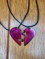 Resin heart friendship neckless, comes with both and they have a 12in black cord.