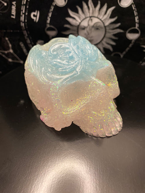 Selena is made out of resin and is 4 1/2in by 3in with a 5 cm by 4cm hole on top of the head.